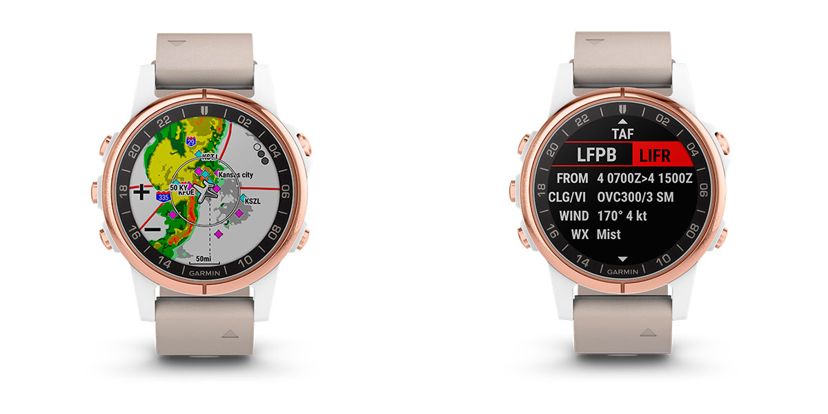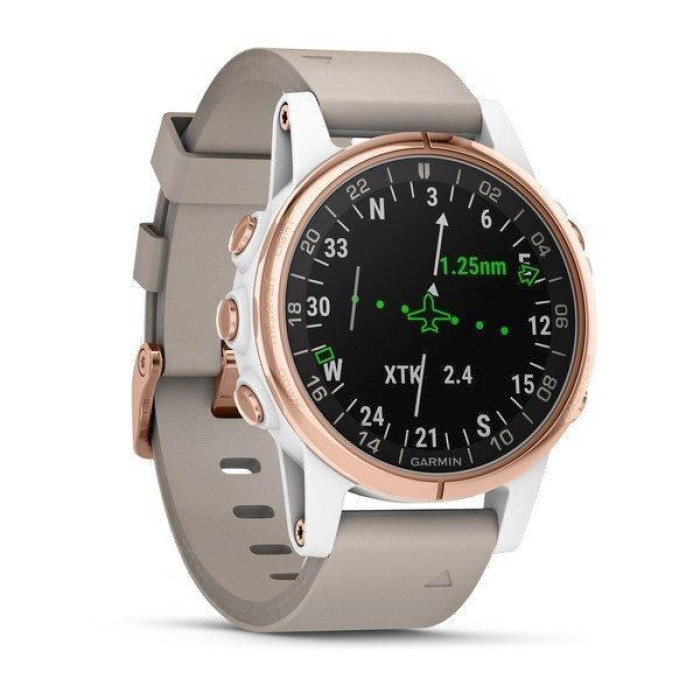 Авіатори та шукачі пригод, які захоплюються авіацією - люди різної статури. Саме тому годинники D2 Delta мають 3 варіанти виконання, які відрізняються за розмірами, а тому ідеально підійдуть для будь-якого зап'ястя. Маючи менші розміри (42 мм), безель із нержавіючої сталі під "рожеве золото", стильний шкіряний ремінець бежевого кольору та високоміцне сапфірове скло, модель D2 Delta S створена для тих, хто хоче отримати усі можливості серії Garmin D2 Delta у годиннику з модним та компактним корпусом. Ви можете бути впевнені, що у разі необхідності, ваш годинник витримає екстремальні умови експлуатації. Завдяки широкому асортименту кольорових карт, метеорологічним даним, можливості позначати шляхові точки та вести журнал польотів, ви можете покластись на свій годинник D2 Delta S у непередбачуваній ситуації та використовувати його у якості резервного навігаційного пристрою в кабіні у разі потреби. У проміжках часу між польотами ви можете використовувати найсучасніші спортивні функції, включаючи оптичний пульсометр Elevate2, функції стеження за щоденною активністю2, тренувальні показники та інші дані, покликані допомогти вам досягати кращих результатів. Для вашої зручності, до комплекту кожної з версій D2 Delta входить м’який силіконовий ремінець з технологією швидкої заміни QuickFit. Куди б ви не вирушили, смарт нотифікації (E-mail, SMS, вхідні дзвінки, повідомлення від месенджерів та ін.) відображаються на дисплеї годинника, допомагаючи вам залишатись у курсі важливих подій.