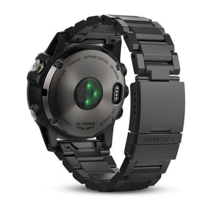 Для виготовлення авіаційного смарт годинника D2 Charlie застосовувались преміум матеріали. Титановий безель пристрою має алмазоподібне карбонове покриття, а сам пристрій доступний в двох преміальний версіях: з вінтажним шкіряним ремінцем та рифленим титановим браслетом класу люкс. Кожна з моделей має яскравий, кольоровий дисплей Garmin Chroma з високою роздільною здатністю та LED-підсвіткою. Такий дисплей забезпечує неперевершену видимість в умовах будь-якого освітлення. З метою додаткової стійкості до подряпин в обох версіях використовується високоміцна куполоподібна сапфірова лінза. Змінні ремінці QuickFit (купуються окремо) дозволяють вмить змінити дизайн вашого годинника згідно з ситуацією – будь то тренування, похід у гори або ділова зустріч. Завантажуйте безкоштовні циферблати, фотографії, додатки та поля даних з нашого онлайн магазину Connect IQ та ще більше персоналізуйте свій аксесуар.