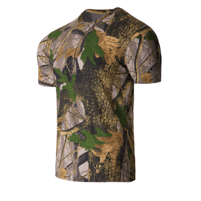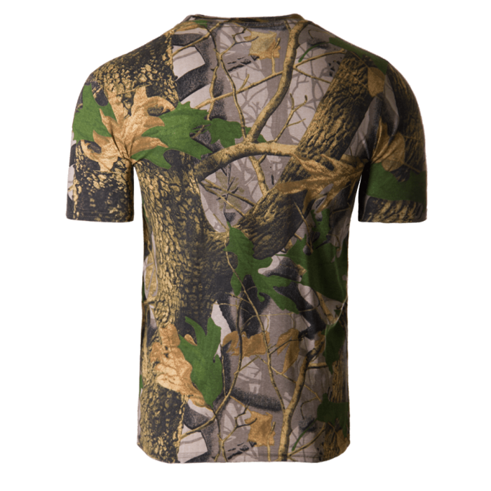 Універсальна футболка з натуральних матеріалів. Добре підійде для літньої, спекотної погоди. Завдяки мисливському, камуфляжному забарвленню також добре підходить для мисливців.