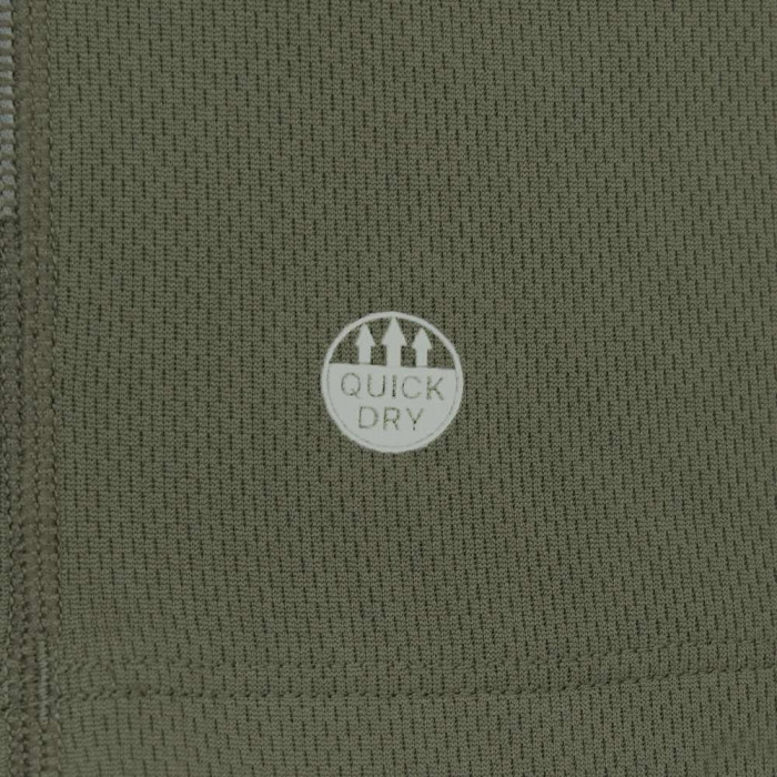 Футболка виконана з сучасної, інноваційної тканини CoolPass Antistatic. Це зносостійка, еластична, гіпоалергенна тканина з синтетичних волокон, з додаванням антистатичної нитки та антибактеріальним просоченням. Новий тип поліестеру має чотириканальну структуру, та підвищені капілярні властивості. Цей фантастичний функціонал досягнуто завдяки високотехнологічній нитці COOLPASS®. Розумні волокна вбирають вологу отриману від тіла, розподіляють її на велику площу, за рахунок чого здійснюється найшвидше її випаровування.