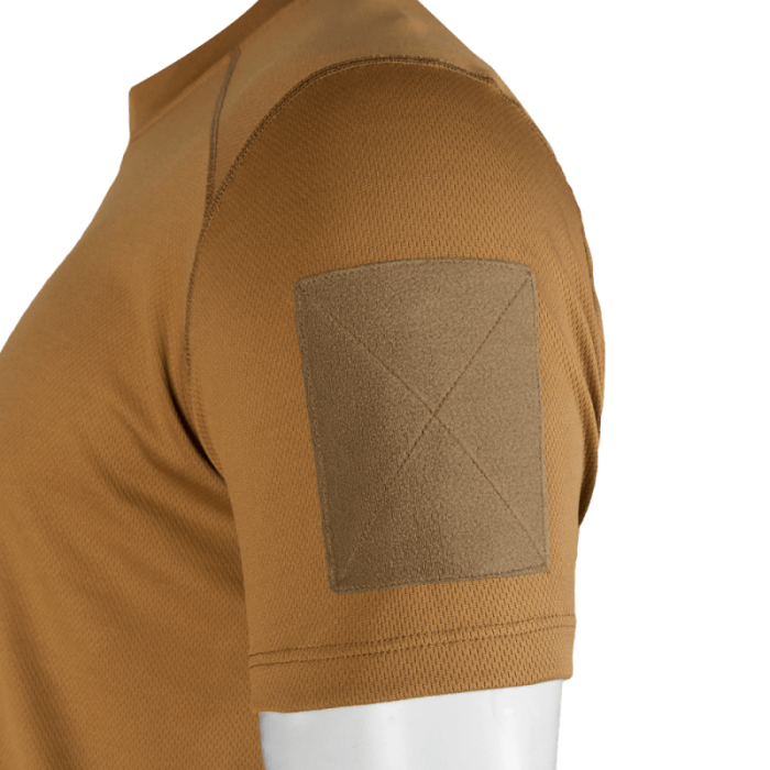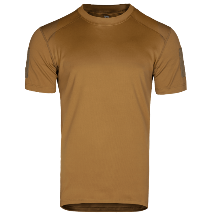 Еластична, формена футболка. Розроблена спеціально для охоронних та воєнізованих структур. Тканина швидко вбирає вологу від тіла та випаровує її назовні. Ідеальний варіант для теплої, спекотної погоди.