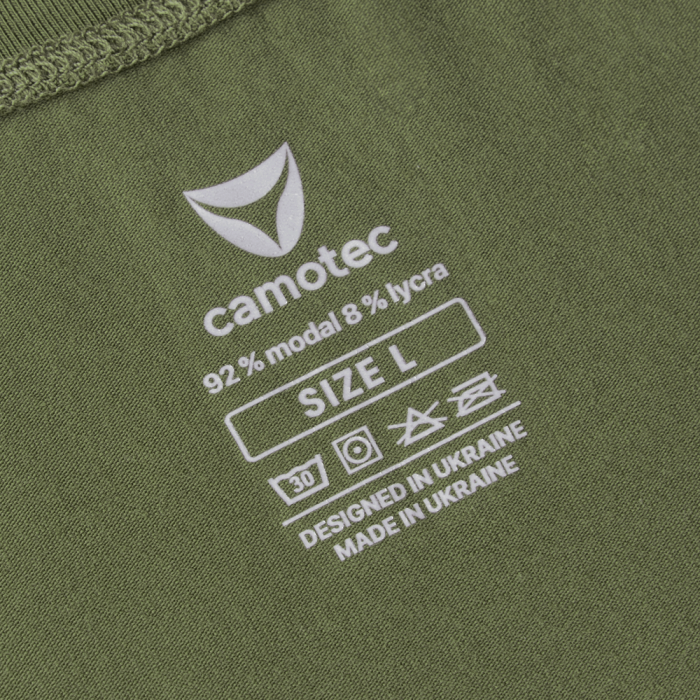 Футболка виготовлена з сучасної, інноваційної тканини Modal. Це синтетичний матеріал створений на основі натуральної деревної, целюлозної сировини. Саме завдяки тому, що основою є целюлоза дерев, матеріал екологічно чистий та безпечний і за деякими показниками навіть кращий, до прикладу, за натуральну бавовну.