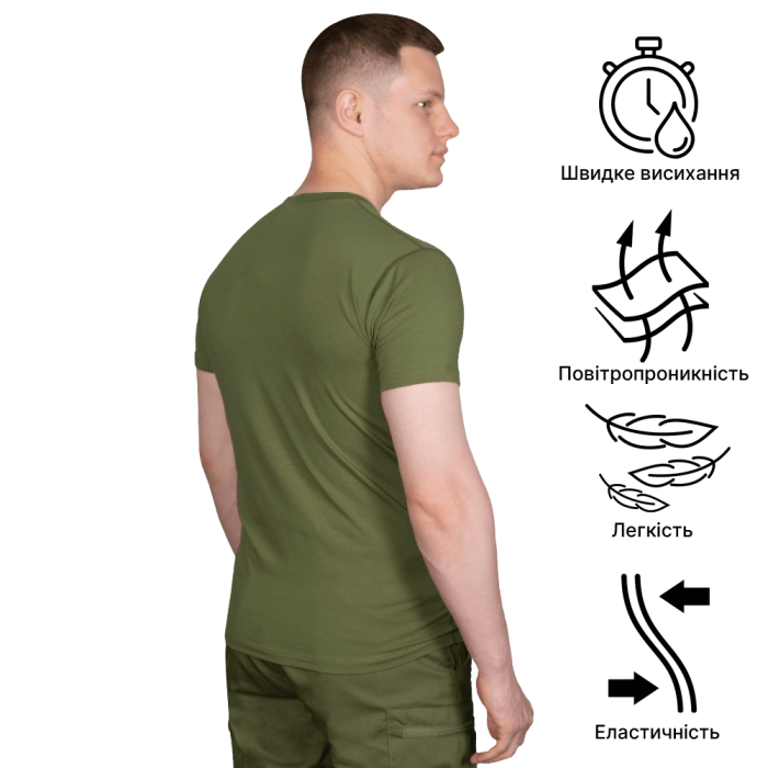 Футболка зшита надійною, еластичною ниткою, за технологією плоских швів. Має зручний, сучасний дизайн та щільно прилягає до тіла, не сковуючи при цьому рухів та не викликає подразнень при тривалій експлуатації.