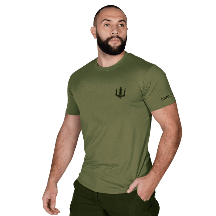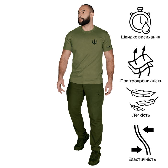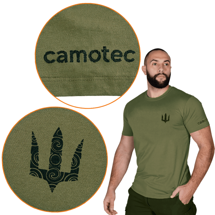 Футболка зшита надійною, еластичною ниткою, за технологією плоских швів. Має зручний, сучасний дизайн та щільно прилягає до тіла, не сковуючи при цьому рухів та не викликає подразнень при тривалій експлуатації.