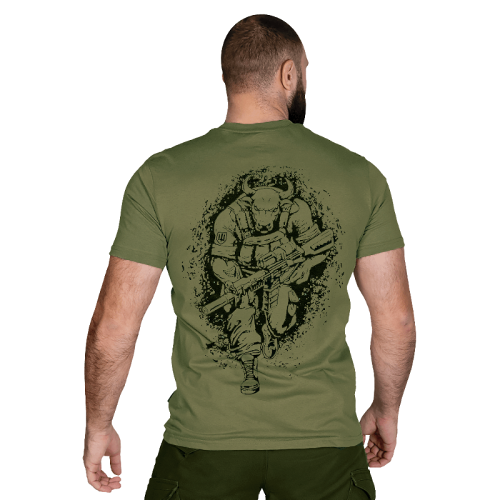 Особливим елементом дизайну футболки є принт спереду на грудях та на спині, який зроблено за допомогою високоякісного термотрансферу, що робить цю футболку унікальною та виразною.