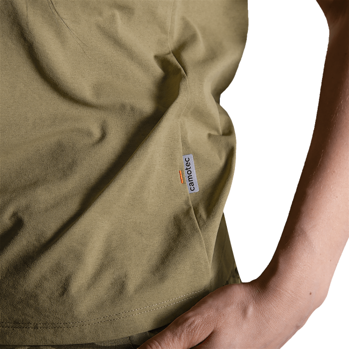 Футболка вироблена з тканини Sorona® - це новий стандарт інновацій серед технологічних тканин. Основа тканини - активні целюлозні волокна рослинного походження, тобто виготовлені з природних матеріалів. Вони мають природну структуру, що ефективно керує швидким транспортуванням вологи від тіла, це зберігає ваше тіло приємно прохолодним та сухим при фізичній активності.