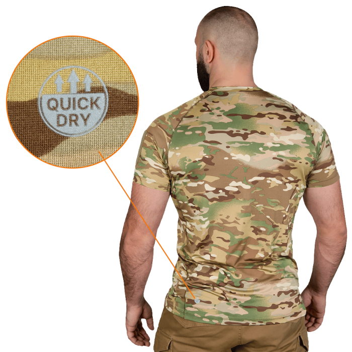 Футболка вироблена з інноваційної тканини CoolPass Single Jersey з антибактеріальним просоченням. Це сучасна, високотехнологічна тканина з синтетичних волокон. Розумні волокна COOLPASS® вбирають вологу отриману від тіла, розподіляють її на велику площу, внаслідок чого здійснюється найшвидше її випаровування.