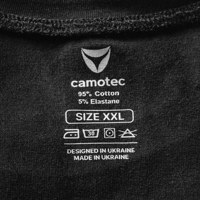 Футболка вироблена з бавовни. Це міцна і зносостійка тканина, яку виробляють з плодів бавовнику. Тканина має високі вологопоглинаючі та дихаючі властивості, що дає змогу носити вироби з цього матеріалу в літню пору року. Тканина дуже легка і м'яка на дотик, приємна до тіла, а головне - не викликає алергічних реакцій. Матеріал має подвійну термообробку, та подвійне фарбування, що мінімізує подальшу усадку та втрату кольору виробу, за умови дотримання правил догляду.
