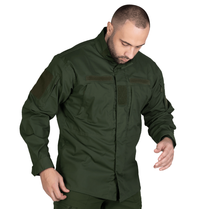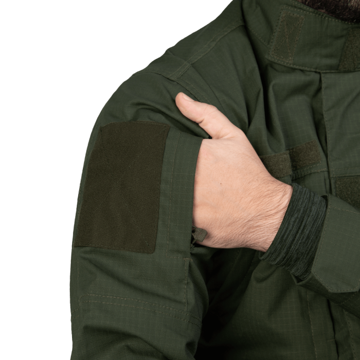 Манжети рукавів регулюються застібками-липучками. Центральна застібка-блискавка закрита захисним клапаном на застібці-липучці. Комір-стійка, регулюється застібкою-липучкою. На грудях та плечах є липучки типа Velcro під шеврони, патчі та погони. Всі застібки-липучки оброблені за технологією Laser cut.