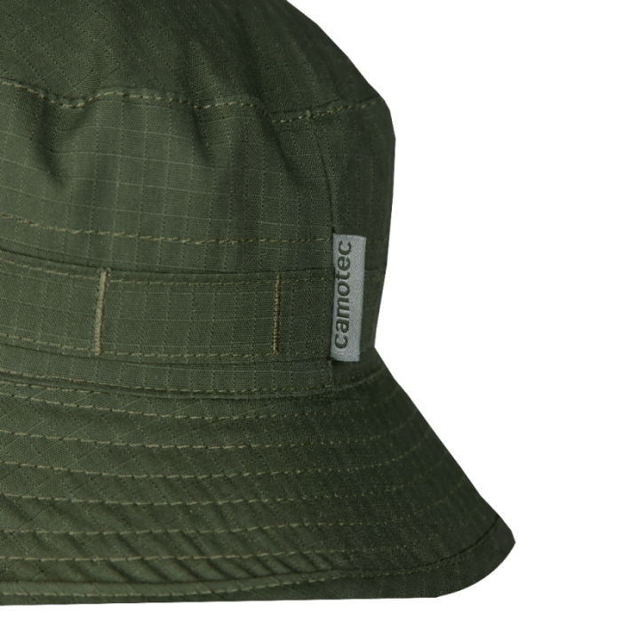 Панама, вироблена з якісних матеріалів та має стропи MOLLE. Добре підійде як аксесуар для туризму, полювання, риболовлі, кемпінгу тощо. Панама виготовлена з тканини Rip-Stop. Це матеріал, що складається з поліестеру та бавовни, дуже міцний та стійкий до стирання й розривів. Поля панами вироблено з тканини подвійного шару та з додатковим прошиттям, що додає їм більшої жорсткості. Для підвищення комфорту, всі шви приховані, як з зовнішньої, так і з внутрішньої сторони. Також з обох боків панами зроблені металеві люверси з захисною сіткою від комах. Панама має шнурок для фіксації, який кріпиться з внутрішньої сторони. Сам шнурок регулюється якісним, пластиковим замком-фіксатором. Навколо верхівки капелюха присутня стрічка MOLLE для додаткового обладнання або аксесуарів. Матеріал: Rip-Stop Склад: 65% Бавовна, 35% поліестер Ширина полів: 55мм Температурний режим: від 18°C до 30°C