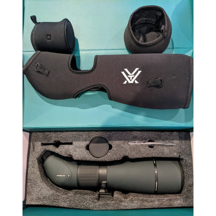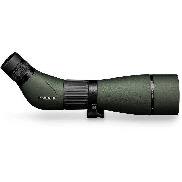 Повністю переосмислений дизайн лінійки Vortex Viper HD відбиває всі сучасні тенденції в галузі ергономіки підзорних труб. Спіральний фокусер збільшеного діаметра сприяє одночасно швидкому, плавному і точному фокусуванню. Хомут кріплення штатива сумісний із швидкознімною системою Manfrotto RC2, яка є на сьогоднішній день стандартом для професійного фото та відеообладнання. Зміни зачепили і оптичні характеристики. Збільшений діаметр об'єктива збирає значно більше світла, і, в комбінації з фірмовим покриттям, що просвітлює, Vortex XR Plus і діелектричним покриттям призм Plasma Tech, забезпечує значно кращу видимість при спостереженнях в сутінках і на світанку. Низькодисперсне HD скло з високою щільністю нівелює практично всі оптичні спотворення по всьому полю зору. Ті, хто впевнений, що підзорна труба High-End класу обов'язково повинна коштувати всіх грошей світу, обов'язково визнають свою помилку при першому ж знайомстві з Vortex Viper HD 20-60x85/45.