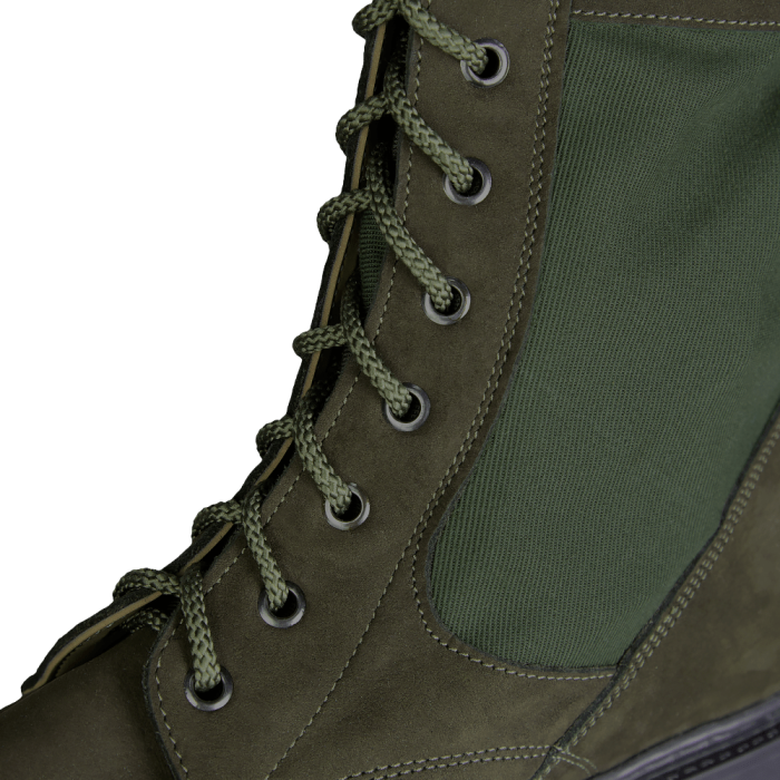 Берці виконані з натурального нубуку зі вставками з Canvas для полегшення виробу та кращої вентиляції. Завдяки чому нога не втомлюється і не пріє при довгому носінні.