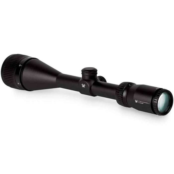 Приціл Vortex CROSSFIRE II 4-12X50 c кільцем швидкого фокусування на об'єктиві. Велике видалення ока від окуляра, швидке фокусування, багатошарові просвітлені лінзи і обнуляє барабани введення поправок з кроком 1/4 MOA - безкомпромісну якість за помірну ціну. Корпус прицілу з цільної трубки з авіаційного алюмінію, азотонаповнен і герметичний для захисту від запотівання і вологозахищеність.
