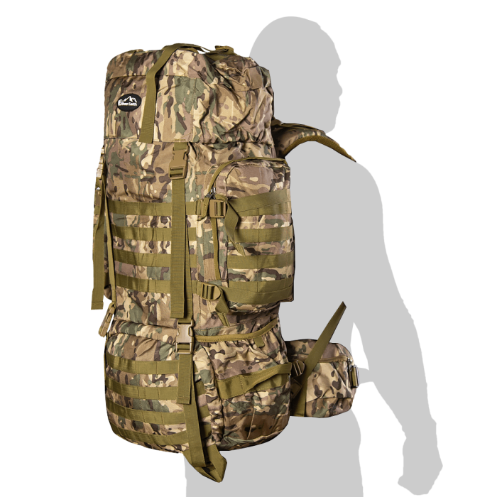 Об’єм рюкзака становить 100 літрів, що дозволяє розмістити всі необхідні речі. Шість додаткових кишень забезпечують зручний доступ до дрібних предметів. Передбачено систему MOLLE, яка дозволяє закріплювати додаткове спорядження, а також кріплення для каремата чи іншого обладнання.