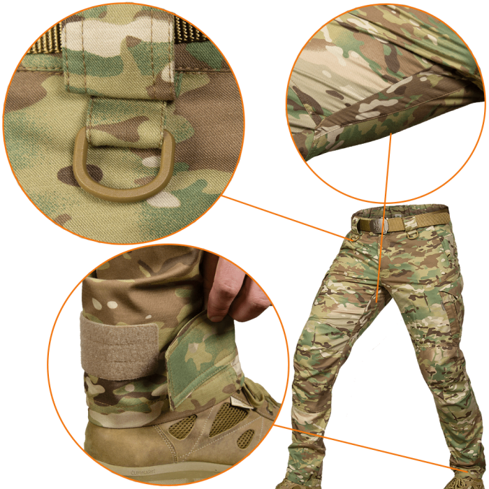 Міцні широкі петлі, які витримають тактичний пояс з кобурою чи підсумками на ньому.