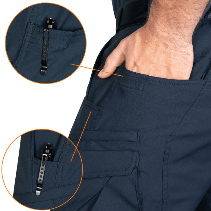 Кишені на стегнах мають подвійний доступ: верхній та боковий, для доступу до речей з будь-якого положення.