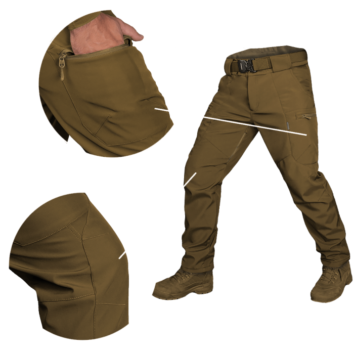 Штани мають ексклюзивний крій від компанії Camotec. Ергономічні виточки в зоні коліна та конструктивні вставки в промежині, що додає комфорту та запобігає натиранню при довготривалому використанні.