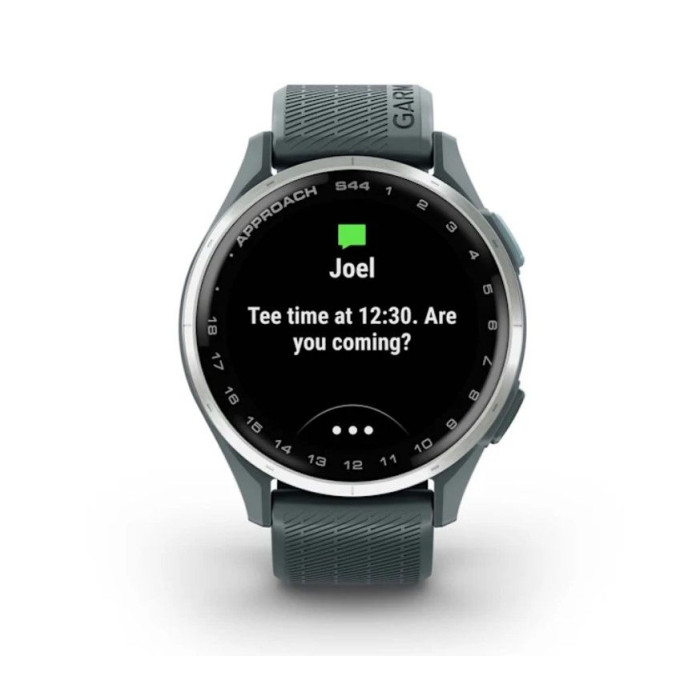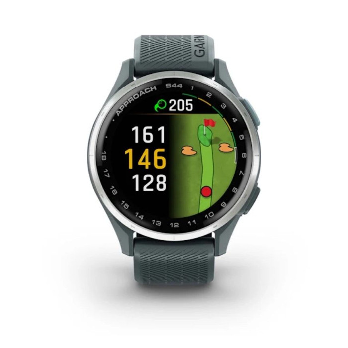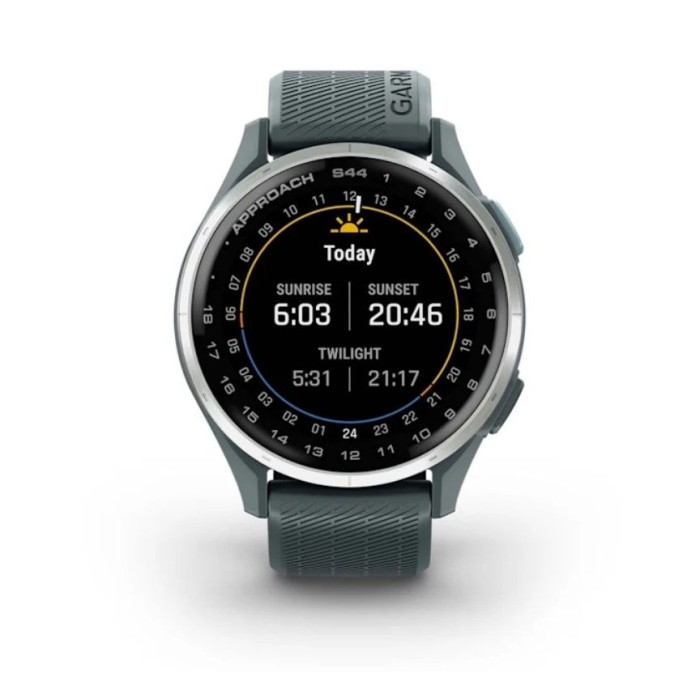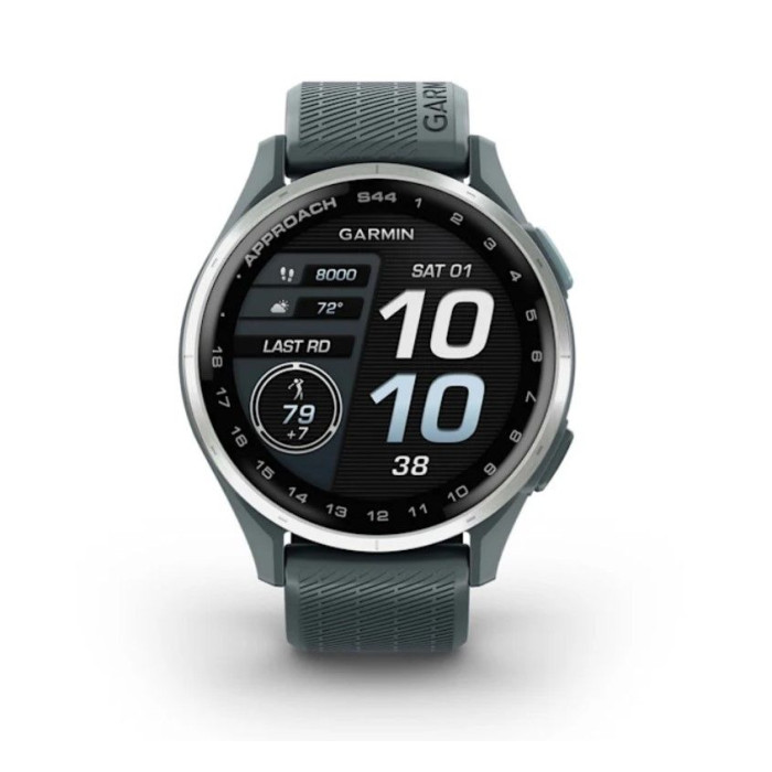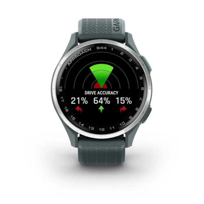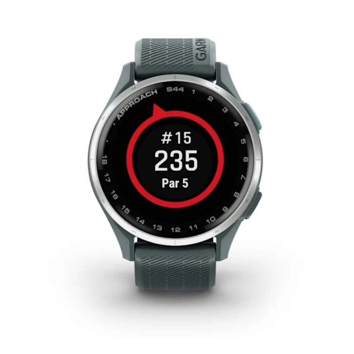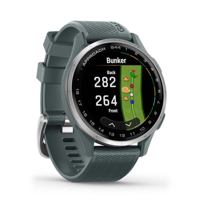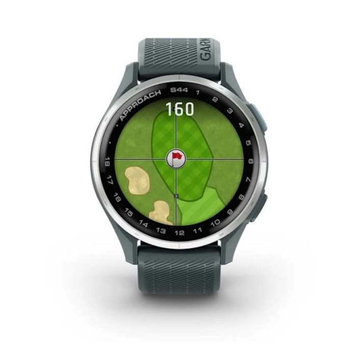 Смарт-годинник Garmin Approach S44 зі сріблястим алюмінієвим безелем і силіконовим ремінцем сутінкового кольору