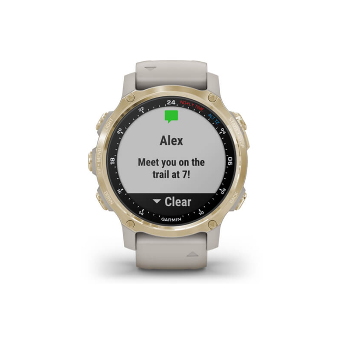 Підключіть Descent Mk2S до пристроїв inReach4 (продається окремо; необхідна активна підписка) для перегляду та відправлення повідомлень, отримання попереджень про погоду та запуску SOS-повідомлень для групи реагування у надзвичайних ситуаціях GEOS 24/7.