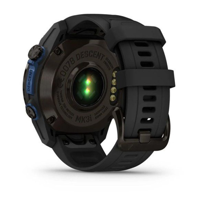 Цей годинник з яскравим кольоровим дисплеєм AMOLED діагоналлю 1,2 дюйми, сапфіровою лінзою, корпусом, що витримує статичний тиск до 20 АТМ, і герметичними металевими індуктивними кнопками створено для глибоководних занурень (до 200 м).
