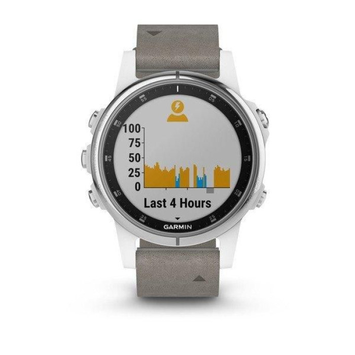 Для спортсменів і для шукачів пригод! Високотехнологічні годинники серії fenix 5 Plus допоможуть вам покращити свої вчорашні результати, забезпечать вас картами і навіть дозволять слухати музику прямо з вашого годинника. Всі годинники серії fenix 5 Plus включають кольорові карти з маршрутизацією та найсучасніший оптичний пульсометр на зап’ясті. Вони дозволяють зберігати у пам’яті до 500 пісень та здійснювати платежі годинником за допомогою системи безконтактних платежів Garmin Pay. Годинник fenix 5S Plus Sapphire White має компактні розміри та вишуканий дизайн, він ідеально підходить для тонких зап'ясть. Сапфірове скло забезпечує додатковий захист екрану від подряпин та ушкоджень при використанні в екстремальних умовах.