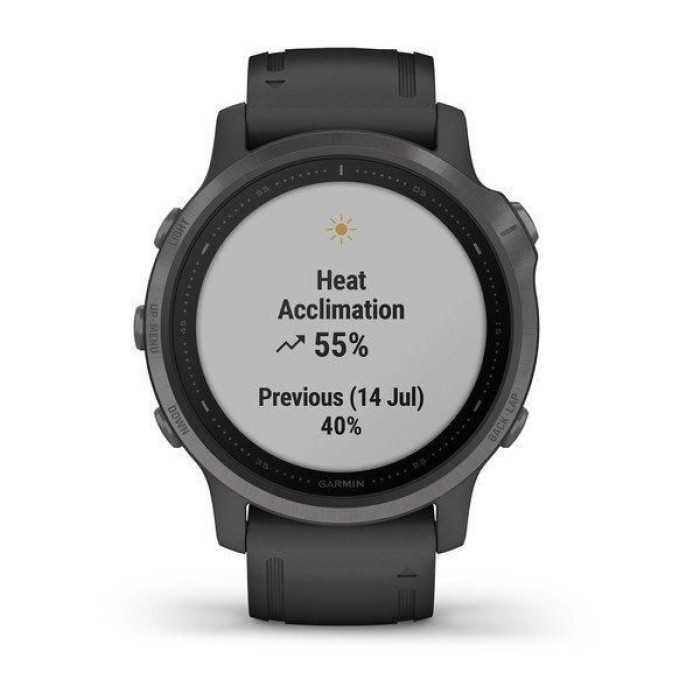 Новий fenix 6S включає картографію, вбудований MP3-плеєр, розумне планування темпу та інші мультиспортивні й інтелектуальні функції серії fenix 6, але при цьому має компактні розміри традиційного елегантного годинника. З датчиком вимірювання кисню у крові (пульсоксиметром).