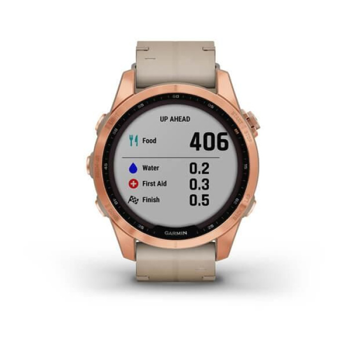 Смарт-годинник Garmin Fenix 7s Sapphire Solar титановий рожеве золото зі світло-бежевим шкіряним ремінцем