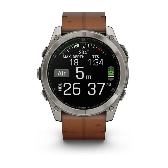 Створений для того, щоб витримувати високі навантаження, розумний годинник Fenix 8 призначений для дайвінгу та оснащений кнопками із захистом від протікання, металевою захисною кришкою сенсора і яскравим 1,4-дюймовим AMOLED-дисплеєм зі стійкою до подряпин сапфіровою лінзою і титановою рамкою. Годинник протестовано відповідно до військових стандартів США на термостійкість, ударостійкість і водонепроникність.
