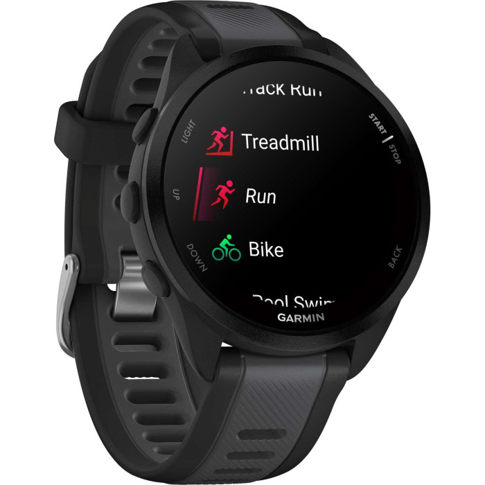 Смарт-годинник Garmin Forerunner 165, чорний/сланцево-сірий силіконовий ремінець