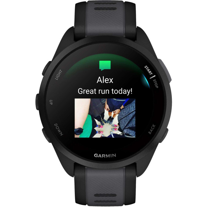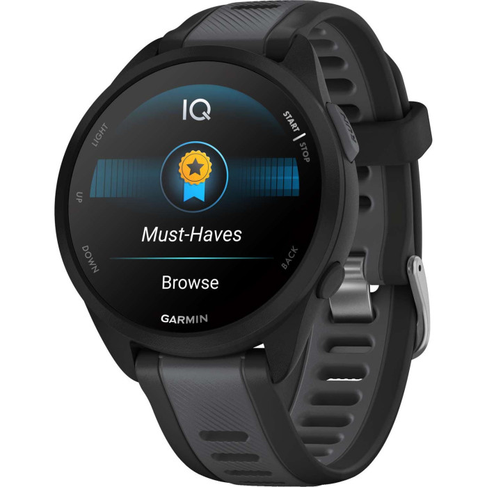 Смарт-годинник Garmin Forerunner 165 Music, чорний/сланцево-сірий силіконовий ремінець