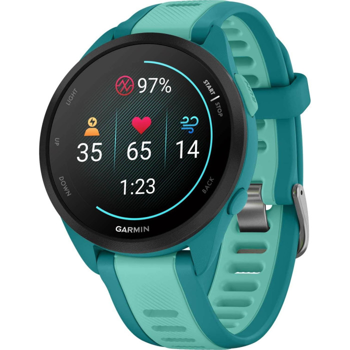 Смарт-годинник Garmin Forerunner 165 Music, силіконовий ремінець кольору бірюзовий/аква