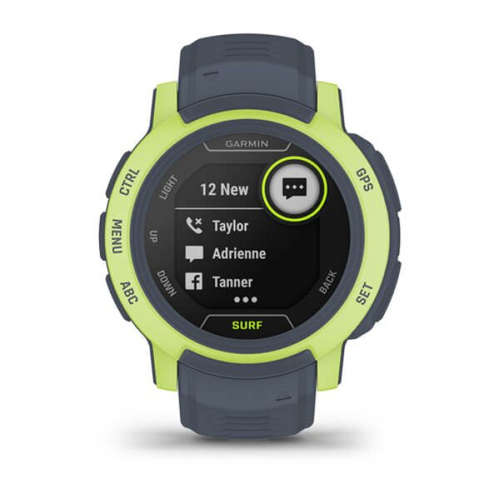 Міцний годинник Instinct® 2 Surf Edition володіє захистом від води до 100 метрів, а також витримує вплив високих температур та ударів. Його корпус виготовлений з полімеру зміцненого волокнами, а екран вкриває хімічно посилене скло Corning® Gorilla® Glass із захистом від появи подряпин.