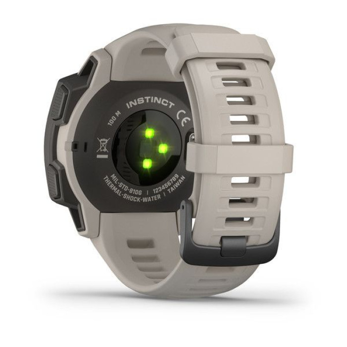 Ви покладаєтесь на Instinct, світ покладається на вас. Цей міцний та надійний туристичний GPS-годинник виготовлений згідно з військовим стандартом 810G, який забезпечує стійкість до негативного впливу зовнішніх факторів, таких як високі або низькі температури, удари, падіння та вплив води (до 100 метрів). Фіброармований полімерний корпус додає пристрою міцності та зносостійкості, в той час як захищений, висококонтрастний дисплей забезпечує легкість перегляду даних на яскравому сонці. Ви можете бути спокійні за свій гаджет в екстремальних умовах, з якими стикаєтесь кожного дня! Силіконові ремінці з отворами по всій поверхні включають два окремих фіксатори, які знімаються та забезпечують надійне прилягання браслета до зап’ястка.