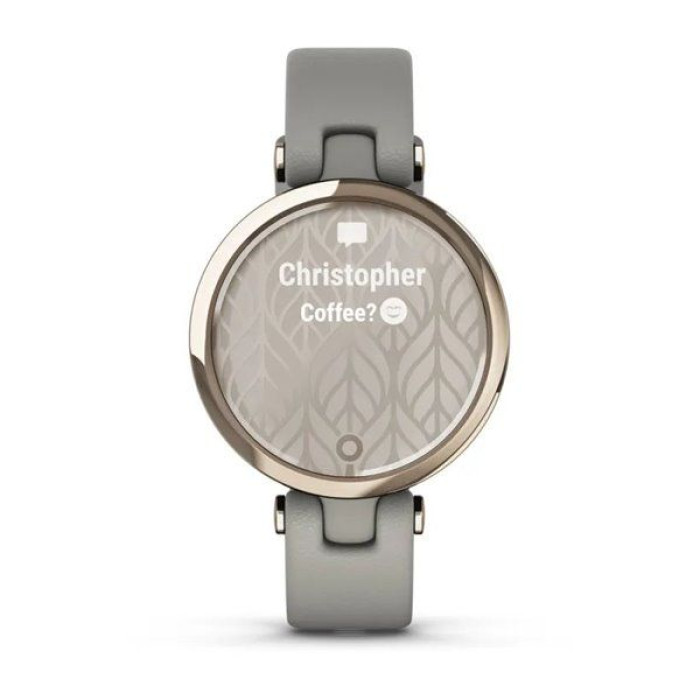 Модний смарт-годинник Garmin Lily унікальний у своєму роді. Надзвичайно тендітний корпус діагоналлю лише 34 мм оснащений стильним візерунковим екраном. Торкніться його або просто поверніть зап’ястя, щоб активувати яскравий сенсорний дисплей з даними.