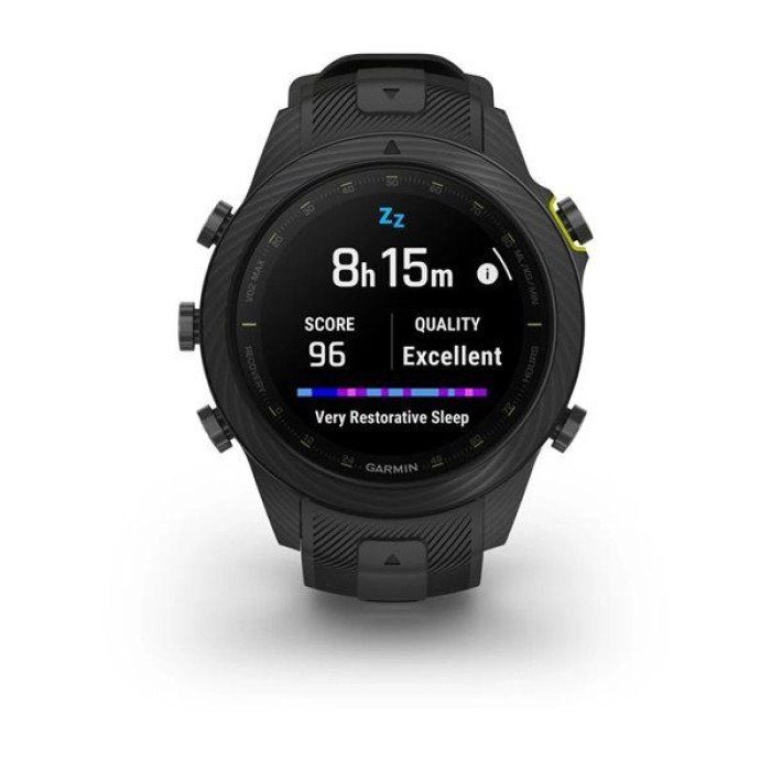 Цей сучасний годинник-інструмент створений для найсильніших суперників. Він оснащений приголомшливим сенсорним дисплеєм AMOLED з традиційними кнопками керування. Корпус діаметром 46 мм та безель виготовлені з матеріалу Fused Carbon Fiber™, що забезпечує наднадійну конструкцію.