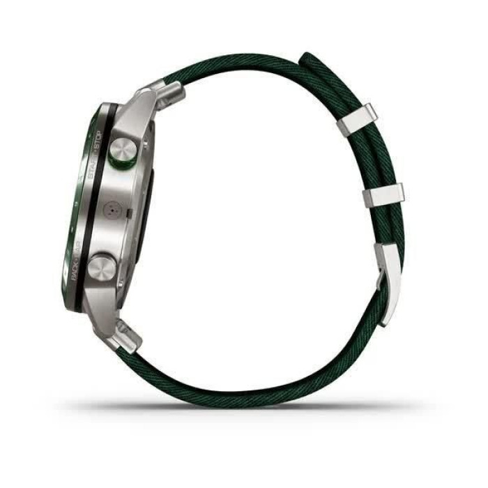 Пристрій має керамічне кільце 46 мм, зелений нейлоновий ремінець, виконаний за технологією жакардового плетіння. Обтічна конструкція не заважає під час гри.