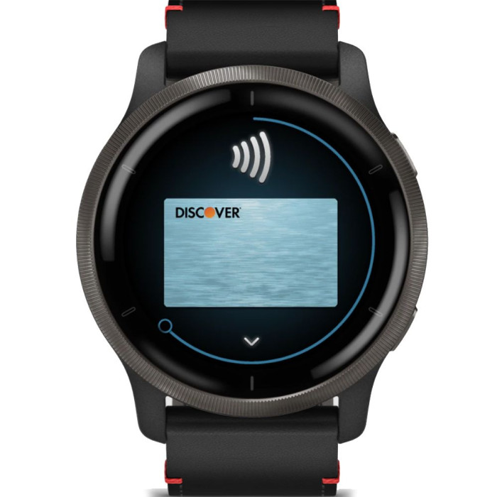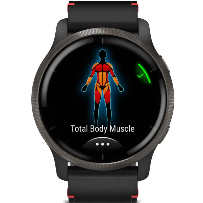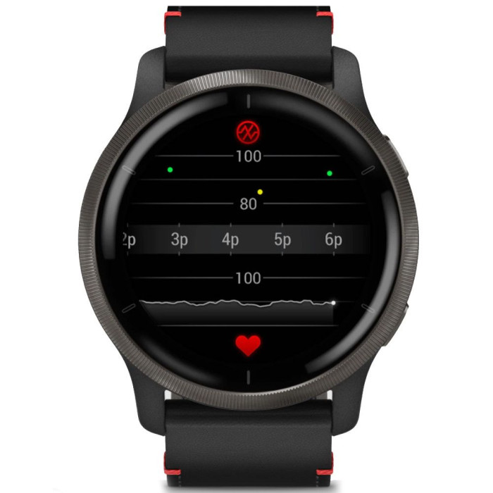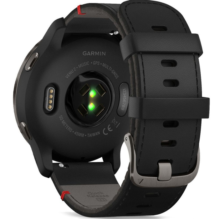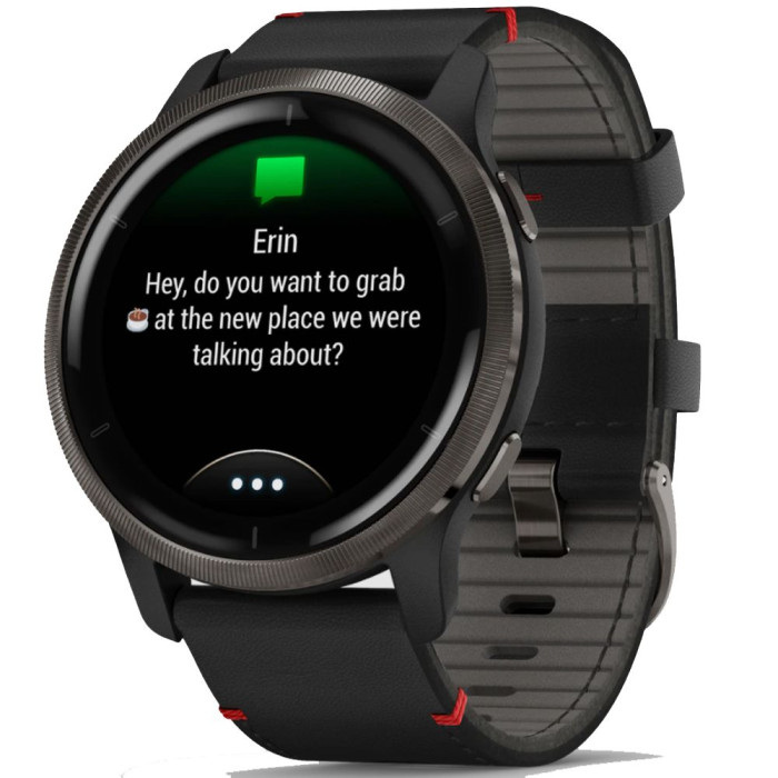 Смарт-годинник Garmin Venu 2 чорний з сірим безелем та шкіряним ремінцем