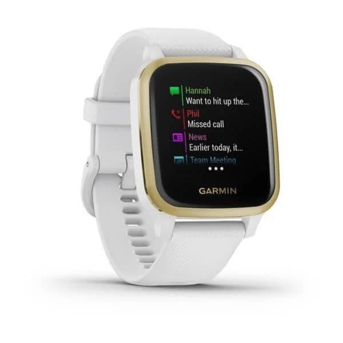 Смарт-годинник Garmin Venu Sq білий з золотистим алюмінієвим безелем та силіконовим ремінцем