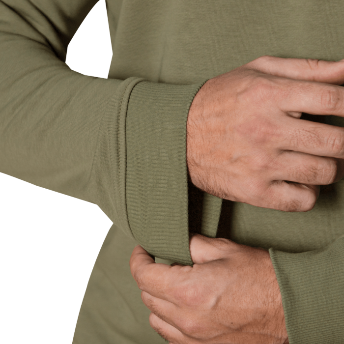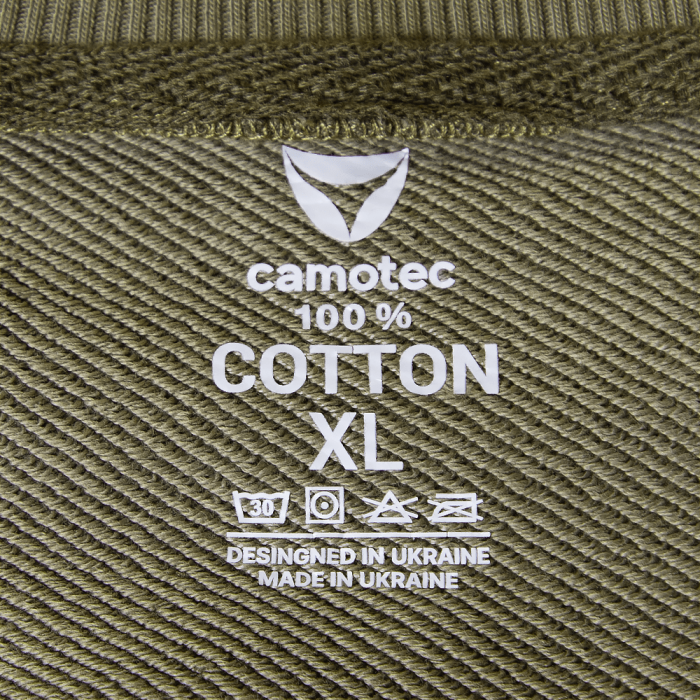 Кофту вироблено з натуральної бавовни у плетінні "тринитка". Тканина має високі дихаючі та зносостійкі властивості, що дає змогу комфортно носити її восени, навесні та в літню пору року. Тканина легка і приємна до тіла, а головне - не викликає алергічних реакцій.