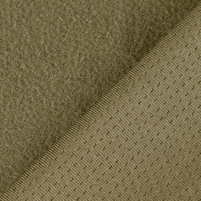 Тканина має тонке плетіння, що робить її майже непомітною на тілі, забезпечуючи повну свободу рухів. Зовнішня сторона оснащена мікроотворами, які покращують вентиляцію та забезпечують безперервну циркуляцію повітря, а внутрішня сторона оброблена технологією Brush (начіс), що надає матеріалу м’якості та зберігає тепло, роблячи її особливо приємною на дотик.