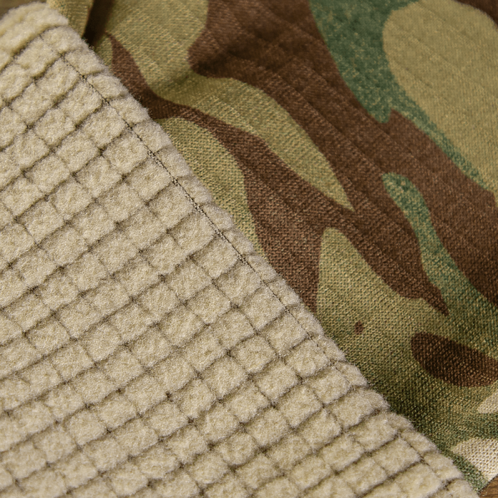Всередині тканина містить шар мікрофлісу - quadro microfleece. Він згрупований у квадрати та має проміжки між ними, а не суцільну поверхню. Це забезпечує краще “дихання” та відведення вологи. Розрахований на активний рух. Завдяки тому, що між “групами ворсинок” є проміжки з основної тканини не щільної в’язки – волога та зайве тепло відводяться від тіла швидше.